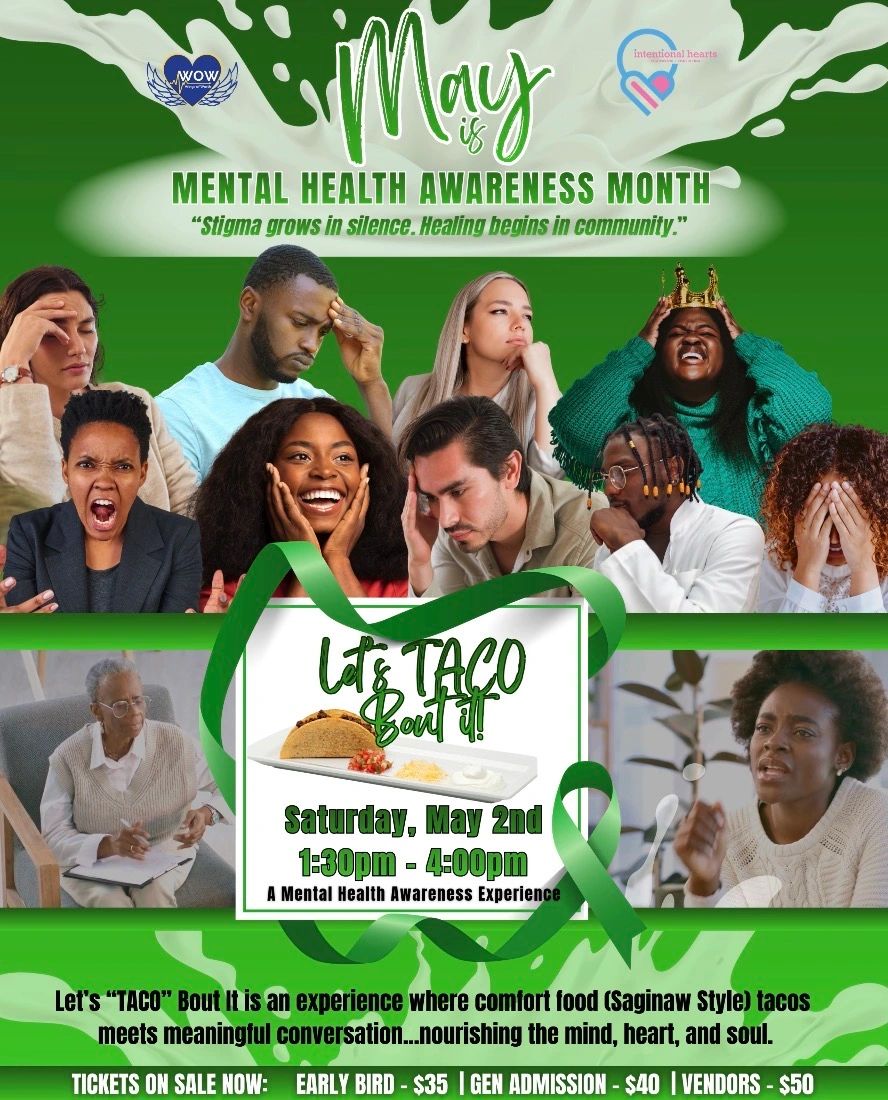 Our collaboration with Intentional Hearts Counseling and Consulting is a mental health awareness experience where we create a safe space to talk, share, learn and support one another while raising awareness about mental health in our community. Cost includes: (3) tacos, spanish rice, beans, sweet tea or water, and a sw